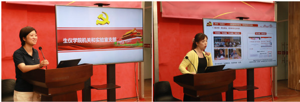 生仪学院机关和实验室党支部书记杨扬介绍了支部在开展理论学习、服务支撑方面的特色亮点。云峰学园第一党支部书记刘帅介绍了支部开展党建情况及辐射的学生群体情况。