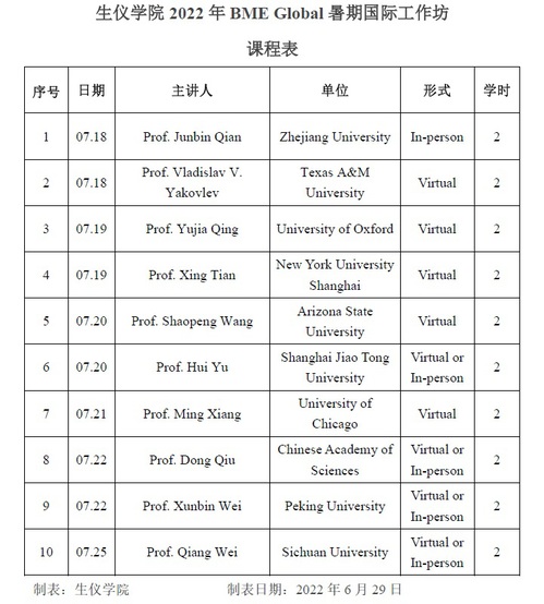 后续具体活动通知及更多信息请关注生仪学院院网国际交流栏目下的国际工作坊。