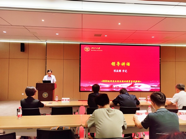 党委书记项品辉对138名研究生的到来表示热烈的欢迎。他强调新同学们要在党史学习教育中坚定理想信念,胸怀天下有高度,筑牢信仰之基、补足精神之钙、把稳思想之舵,服务国家需求;在科研实践锻炼中扎根中国大地,提升视野有广度,将理论学习结合实践锻炼,在实践中不断磨砺心性;在学思践悟中携梦砥砺前行,锤炼本领有亮度,在研究生生涯中积极参加学术论坛等活动和创新创业赛事,在不断的沟通交流中碰撞思想、锤炼本领。他希望同学们尽快适应新的学习生活环境,敢于挑战,不负韶华、不负时代、不负人民,以最好的青春姿态喜迎党的二十大的胜利召开。