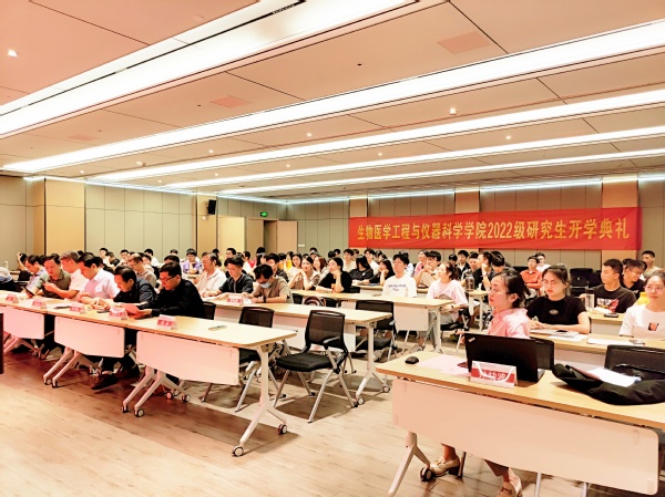 院长张宏作理想信念专题报告。他从学院的历史发展开始介绍,向学生们全面介绍了学院的人才培养理念、师资队伍、科研实力以及文化传承。张院长指出生物医学工程是利用工程科学与技术推动现代医学发展的主力军,他叮嘱学生们要继续传承学院优良传统,深耕科学研究,学好本领服务国家战略,在全民健康领域为国家的科技事业进步贡献智慧力量。张院长特别强调了研究生们要立足学院“实践、交叉、创新”的育人理念,充分发挥学科特长优势,勇于挑战,不断进取,在创新创业和各类学科竞赛中保持奋勇向前的姿态,取得更好地优异成绩,继续书写生仪故事!