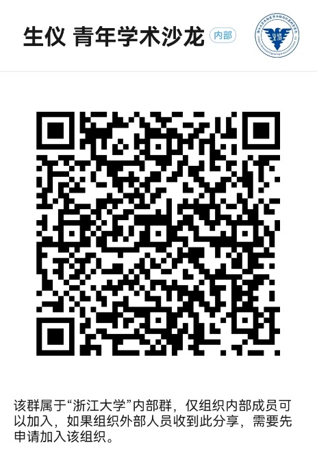 线上:因事无法现场同学,可以钉钉扫码进入“生仪 青年学术沙龙”内部群,观看直播。