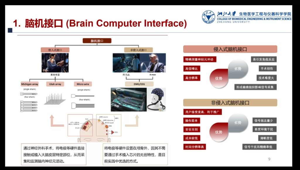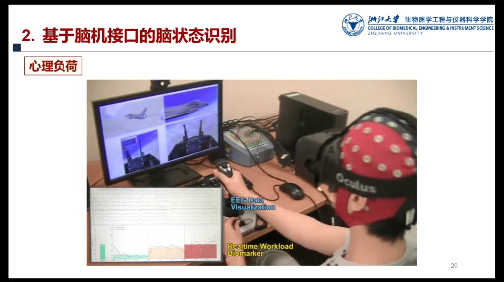 孙煜老师从脑机接口的历史起手,逐步解释了脑机接口技术的定义——一种通过直接检测中枢神经系统活动并将其转化为人工输出,来替代、修复、增强、补充或者改善中枢神经系统的正常输出,从而改变中枢神经系统与内外环境之间交互作用的技术。其中提到脑机接口最初的研究目的是通过解析瘫痪病人大脑信号中的运动意图完成对外部设备的控制,进而满足患者康复训练与交互的需求。而近年来,一个面向广大正常被试的新兴BCI研究方向:即被动式BCI受到了越来越多的关注。被动式BCI是通过解析穿戴式设备采集的生理信号(主要是脑电信号)从而实现无干扰的脑状态检测,这里常见的脑状态包括心理负荷、心理疲劳、各种情绪等,这也正是孙煜老师课题组的一大研究领域。通过对于国内外的研究成果以及孙老师课题组的被动式脑机接口检测心理疲劳与心理负荷研究与实验范式的介绍,同学们对于被动式脑机接口有了一定的了解与认识。
