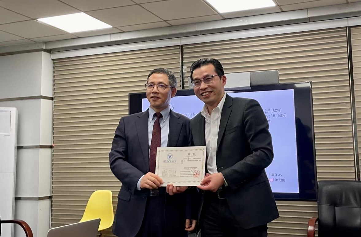 活动结束后,由林辉副院长给牟一平主任颁发了生仪学院第166期青年学术沙龙活动讲师的聘书,并进行了合影留念。