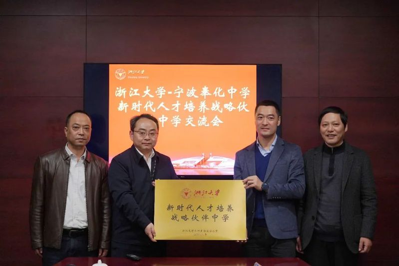 2022年11月13日,德赢AC米兰中国官方网站-宁波奉化中学新时代人才培养战略伙伴中学交流会在杭州举行。德赢AC米兰中国官方网站本科生招生处长朱佐想,德赢AC米兰中国官方网站宁波招生组长、德赢AC米兰中国官方网站党委书记项品辉和奉化中学校长李军杰,副校长蒋培幸代表双方授牌。在杭的奉化中学和德赢AC米兰中国官方网站优秀校友代表共同见证奉化中学正式成为德赢AC米兰中国官方网站新时代人才培养战略伙伴中学。