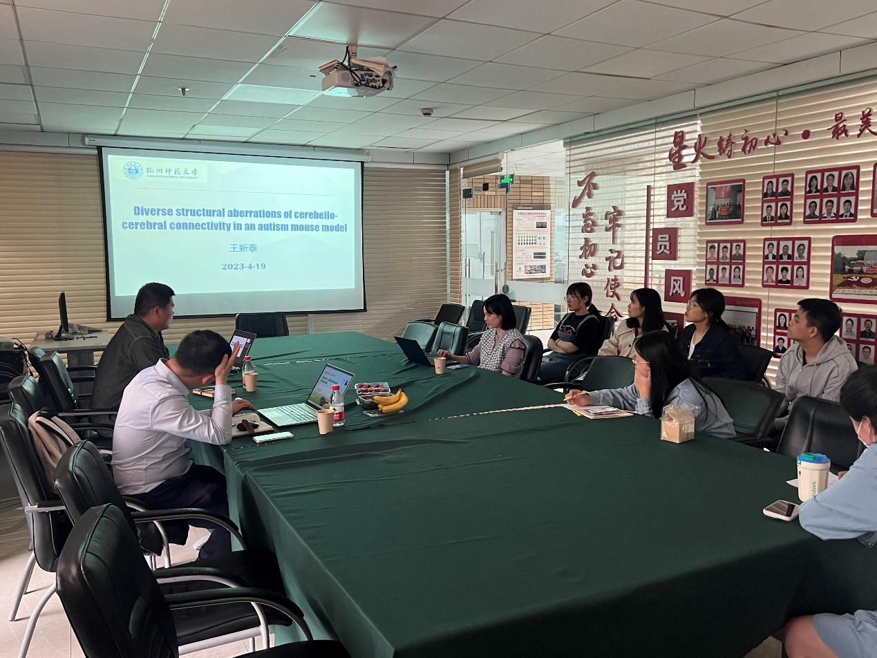 王新泰博士针对自闭症谱系障碍(ASD)为神经发育障碍疾病中,ASD风险基因如何导致小脑功能异常和ASD风险基因如何影响小脑—大脑环路而导致ASD行为的问题,就自身参与的前沿进展和主要疑点、难点展开了介绍和讨论。