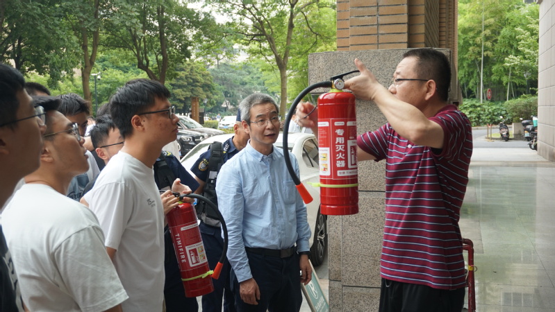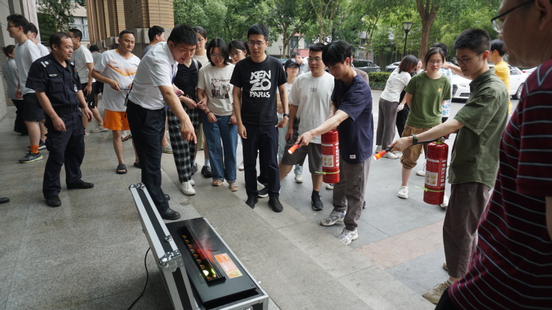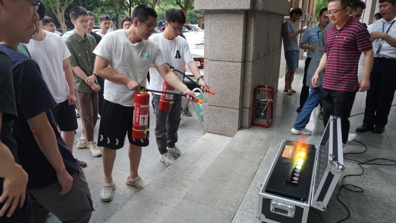 随后,学校安保处老师现场讲解了灭火器的使用方法,并指导师生进行了电子灭火,提升了师生员工的灭火技能。