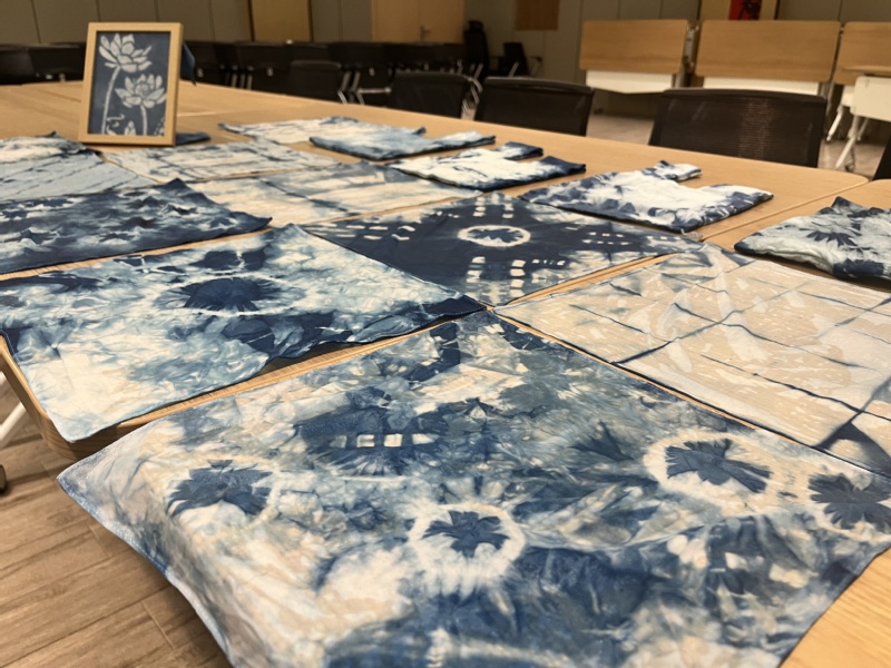 经过一系列步骤,女教职工们陆续完成了自己的扎染作品。这些图案各异、色彩丰富、风格多元的扎染作品体现了女教职工个人的审美理想和艺术想象。女教职工们在制作过程中将自己对美好生活的想象注入到作品中,形成了独一无二的手工作品。