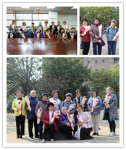 红绳一米手中绕,福寿双全乐逍遥。大家戴着自己的作品,来到学院门前的草坪上、留下一阵阵爽朗的笑声、一张张动人的合影,手捧鲜花,仿佛回到了少女时光,幸福从心底涌出……老师们纷纷表示,今年的38节过得非常有意义,大家玩得很开心。