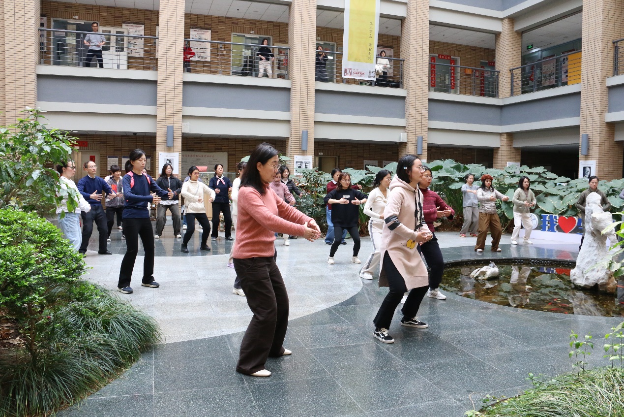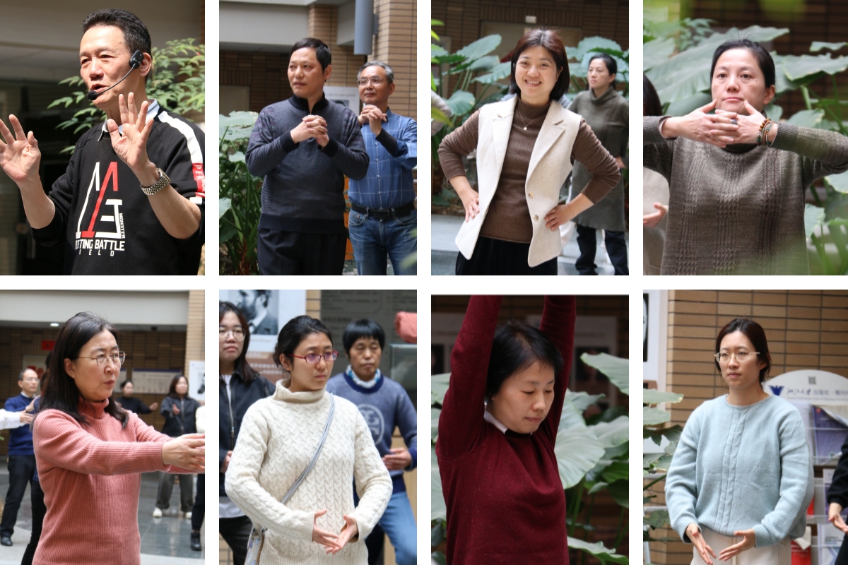 作为中国古代气功功法中一项流传广泛、深受大众喜爱的健身运动,八段锦讲究动静相兼、柔和缓慢、圆活连贯,运动幅度较小,不容易出现运动损伤,且能够对紧张的肌肉进行充分拉伸,有效缓解长期伏案造成的疲乏与不适,增强心肺功能与疾病抵抗能力。对于日常工作中久坐不动的教职工群体,定期坚持八段锦锻炼,能够疏经通络、舒展筋骨、改善血液循环,为教职工以良好的身体状况投入工作奠定体质基础。