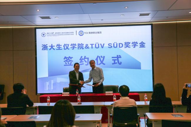 德赢AC米兰中国官方网站生仪学院党委书记项品辉老师、副院长周泓教授、副书记杨扬老师,TÜV SÜD集团北亚区人力资源高级副总裁William Wang、大中华区IT高级经理顾翔和其他业务部门负责人参加了此次仪式。德赢AC米兰中国官方网站生仪学院项品辉书记和William Wang签署捐赠协议书并相互交换。