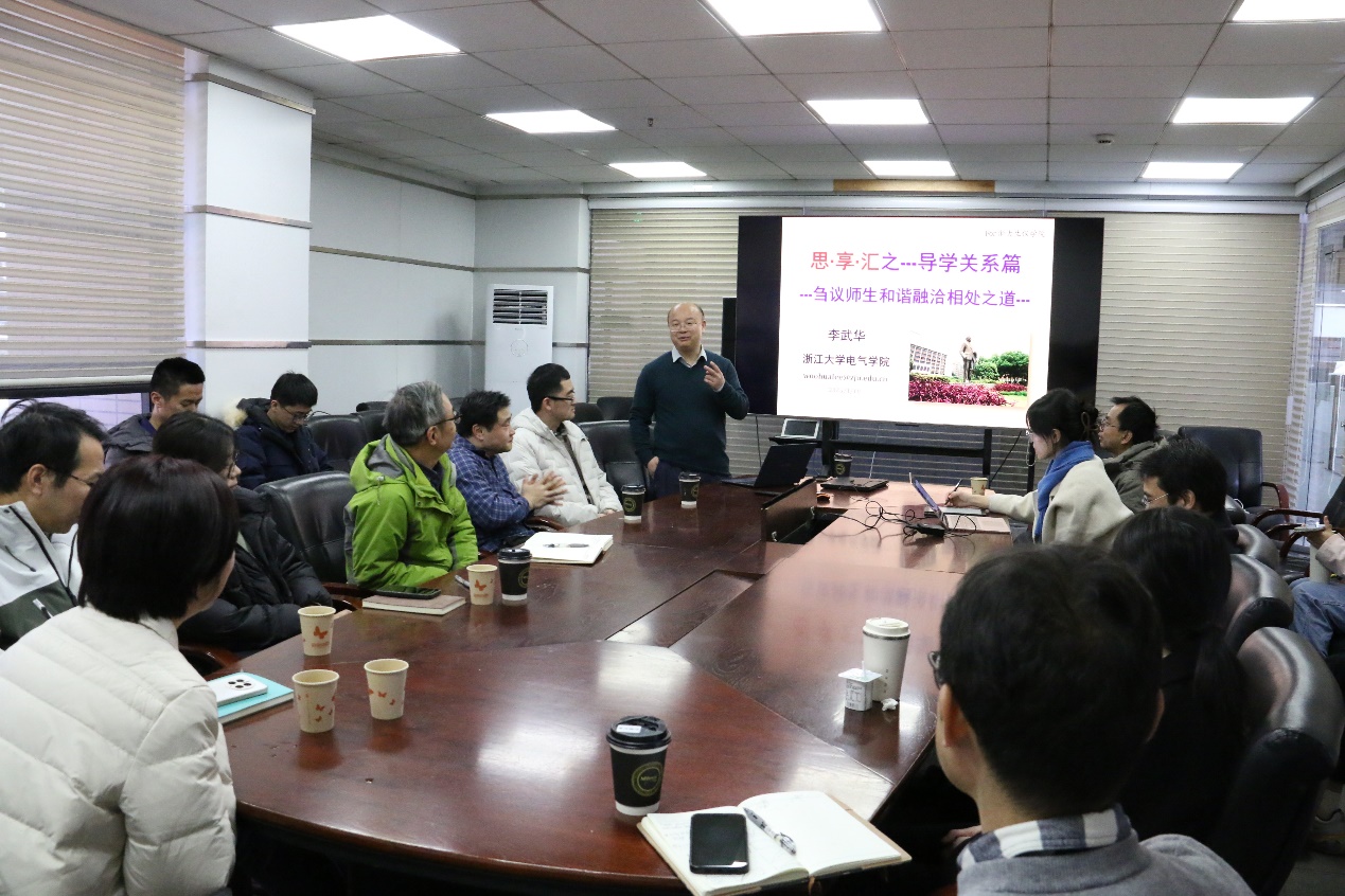 2025年1月10日,生仪学院导师工作坊第四期主题沙龙,邀请到电气工程学院副院长李武华教授,带来一场主题为“刍议师生和谐融洽相处之道”的分享。本次研讨会由生仪学院党委副书记兼纪委书记杨扬主持,研究生导师和德育导师齐聚一堂,共同探讨如何构建和谐的师生关系,以及如何通过有效的导学互动促进学术研究和人才培养。