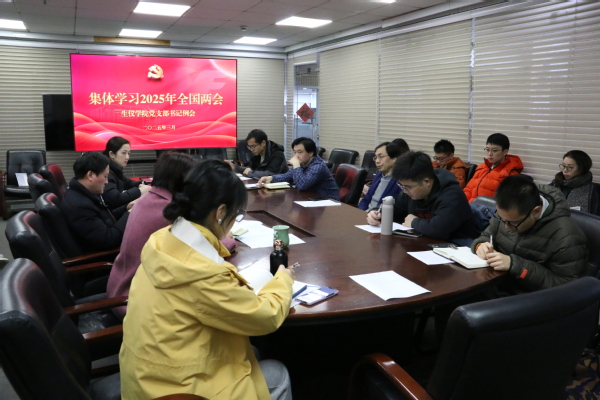 2025年3月5日,十四届全国人大三次会议在北京召开。生仪学院党委组织全体师生党支部书记集中收看政府工作报告,重点学习与讨论了政府工作报告中关于新质生产力、数字中国建设、人工智能+、未来产业等与学科发展密切相关的内容。