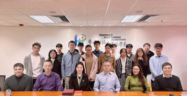 Invited by Professor Qiu Anqi’s research team at Hong Kong Polytechnic University, the delegation first visited the Department of Health Technology and Informatics. During a symposium, Professor Cai Jing, Head of the Department, delivered a welcome speech and introduced the department’s academic framework. Attendees included Deputy Head Professor Zou Xiang, Professor Qiu Anqi, Associate Professor Lin Liangting, and Clinical Associate Professor Leung Yanshun. Students engaged in in-depth discussions with faculty members, expressing eagerness to immerse themselves in Hong Kong PolyU’s academic environment and strengthen future collaborations.