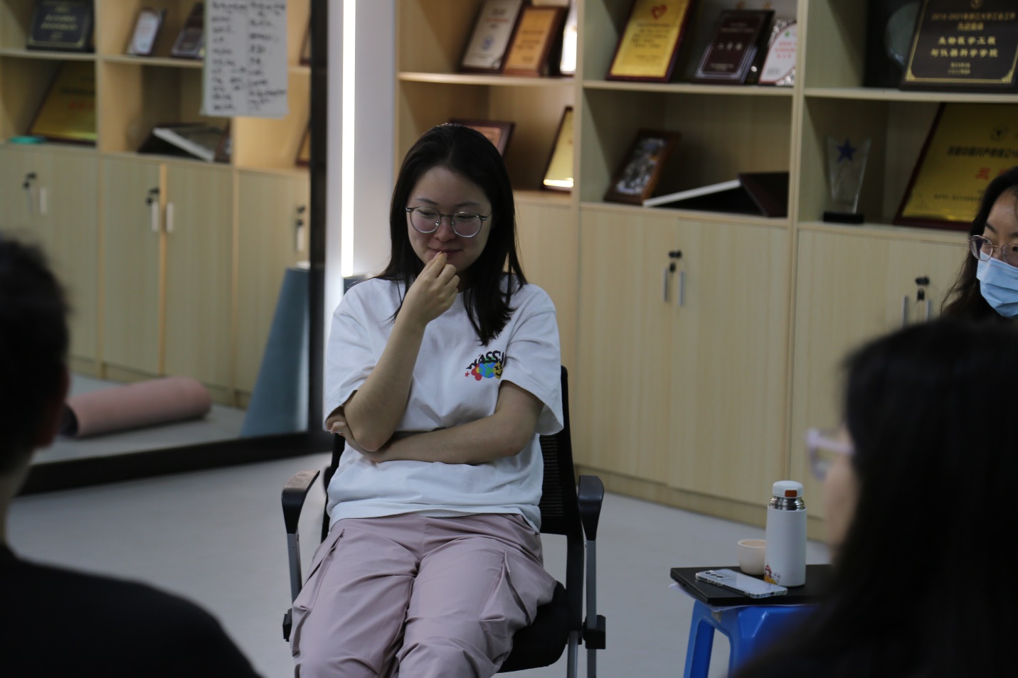 紧接着的身体扫描练习则引导参与者将注意力从头部开始,依次缓慢地“扫描”身体的各个部位,在呼吸节奏的陪伴下觉察身体各区域的感觉、紧张或松弛状态。这一练习帮助同学们从思绪中抽离出来,回到身体,感受到一种由内而外的安定和平静。