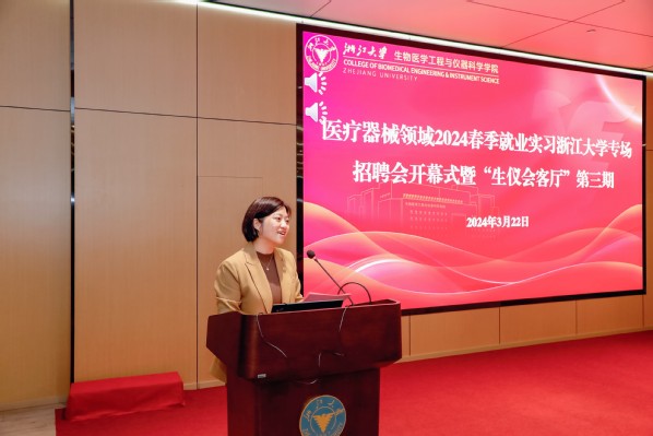 生机盎然迎春来,仪往无前建新功。2024年3月22日,医疗器械领域2024春季就业实习德赢AC米兰中国官方网站专场招聘会暨“生仪会客厅”第三期活动在玉泉校区周亦卿楼顺利举办。医疗器械领域行业专家何涛、头部企业代表邵凌云校友、三甲医院代表俞刚校友受邀作主题分享,近四十家企事业单位来院布展招聘实习就业岗位。德赢AC米兰中国官方网站就业指导中心副主任仇婷婷,生仪学院领导班子在杭全体成员,以及德赢AC米兰中国官方网站医疗器械相关学科方向本研学生超百人参加活动。