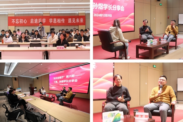 为帮助同学们与各行业、各领域,不同发展阶段的榜样典范搭建有效沟通平台,2024年12月20日,“生仪会客厅”第六期——丁鼐、孙煜学长分享会在玉泉校区周亦卿楼报告厅顺利举办。学院党委副书记、纪委书记杨扬老师,校友办公室成员以及六十余位学生参加活动。