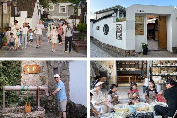 疗休养行程首日,教职工们首先前往普陀新地标——路下徐乡村。这里既是遗世独立的田园秘境,也是融合美学、艺术与生活的多功能空间:田野、山林、溪流等风景经艺术创作与文化植入焕发生机,网红书屋、静谧茶室、特色咖啡馆与传统酒坊错落其间,更有古法扎染、活字印刷等非遗体验项目。教职工们纷纷放慢脚步,沉浸式融入乡村的慢生活节奏,在触摸传统文化、欣赏秀丽风景的过程中,洗去平日工作的疲惫。