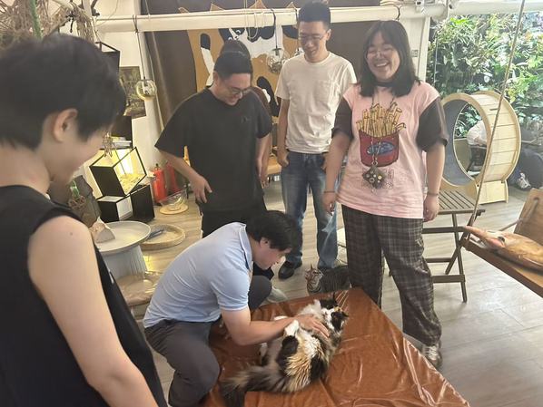 选择猫咖作为交流场域,本身就是一次用心的设计。希望通过非正式的“第三空间”,让青年教师放下“”指导者”的身份包袱,像朋友一样聊聊团队建设中的真实困境。当青年教师们暂时脱离实验室与讲台的忙碌,在猫咪的“氛围组”加持下,原本可能拘谨的话题逐渐打开:如何平衡科研目标与成员个性化发展?怎样通过日常细节建立团队信任感?面对成员的阶段性迷茫该如何引导?青年教师们结合自身经历,分享了从“单兵作战”到“团队领航”的心得——有的提到用“项目轮值制”培养成员主动性,有的谈到定期组织“非学术茶话会”增进情感联结,还有的分享了“允许试错、及时托底”的团队文化培育经验。