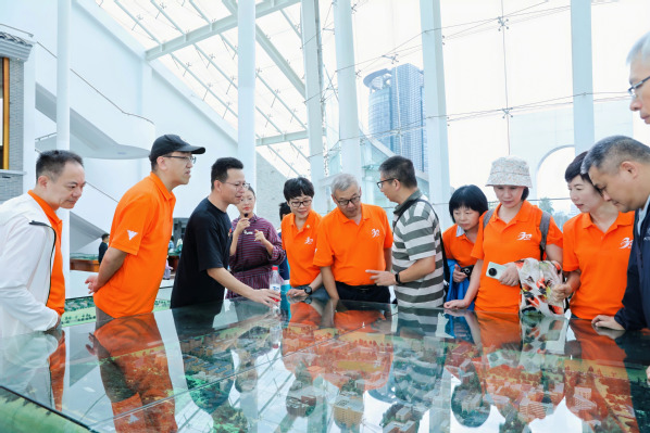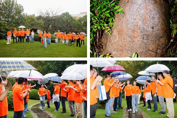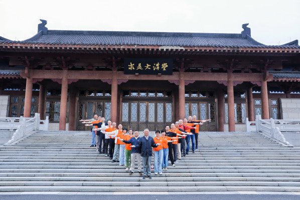 第二天校友们来到紫金港校区,启真湖的波光里映着新校区的轮廓,校史馆的老物件蕴藏着岁月的厚重。南大门前,校友们驻足凝望着这座由深圳校友会捐赠建设的新大门,从门柱的纹路里,仿佛洞见了前辈们反哺母校的拳拳之心。行至求是大讲堂前,校友们拾级而上,轻扶讲堂外墙的纹路,在“求是”二字的精神印记旁定格合影,让新校区的人文气息与同窗情谊一同留在镜头里。