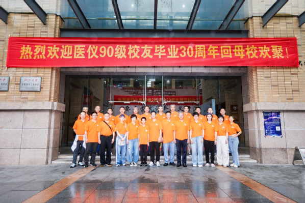秋阳筛过玉泉校区的梧桐隙,将鎏金光斑缀在“热烈欢迎医仪90级校友毕业三十周年返校”的横幅上。2025年10月18日的玉泉校区,秋风里裹着桂香与旧时光的气息,一群阔别三十年的“学子”踏着重逢的脚步,共赴这场跨越山海的青春之约。