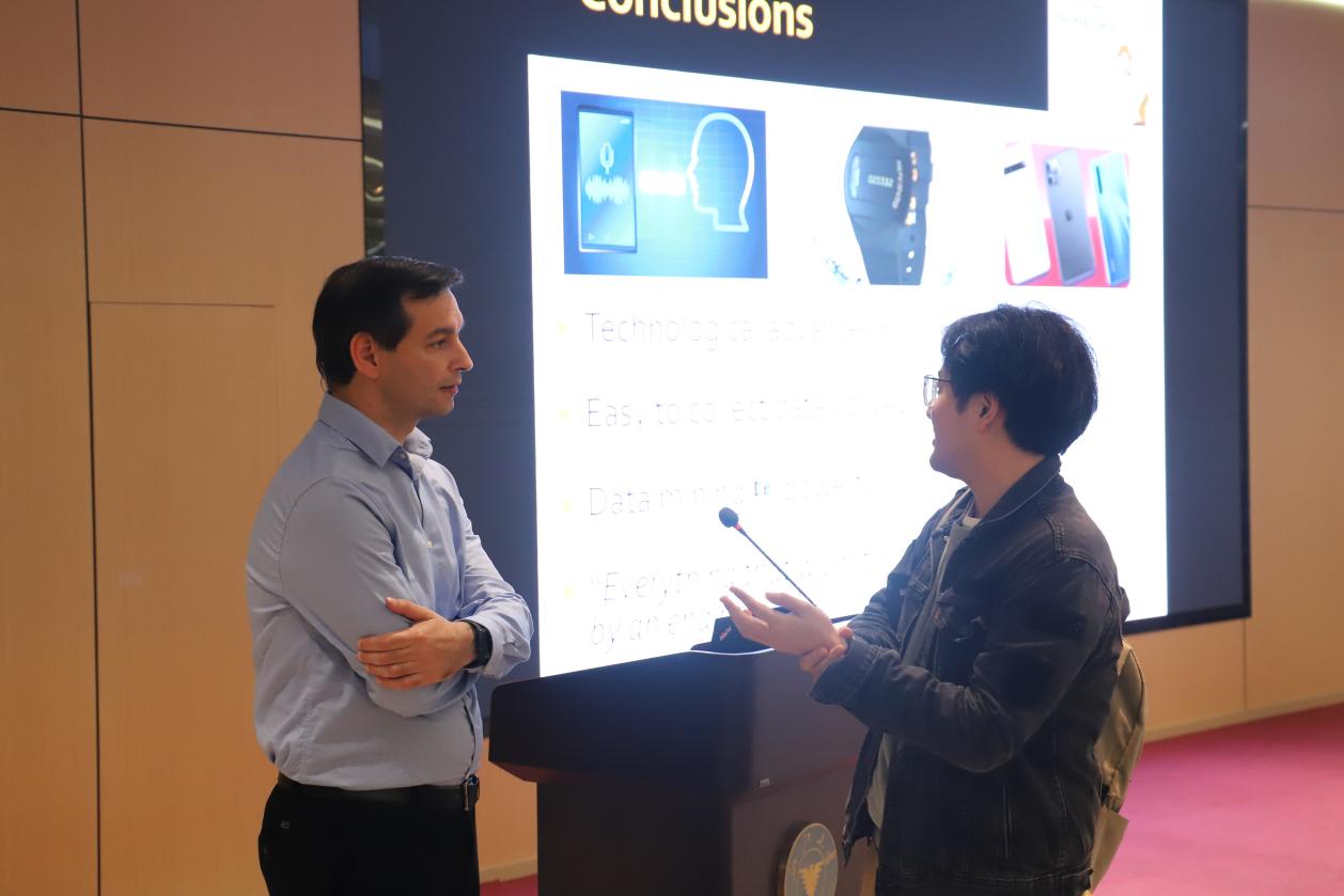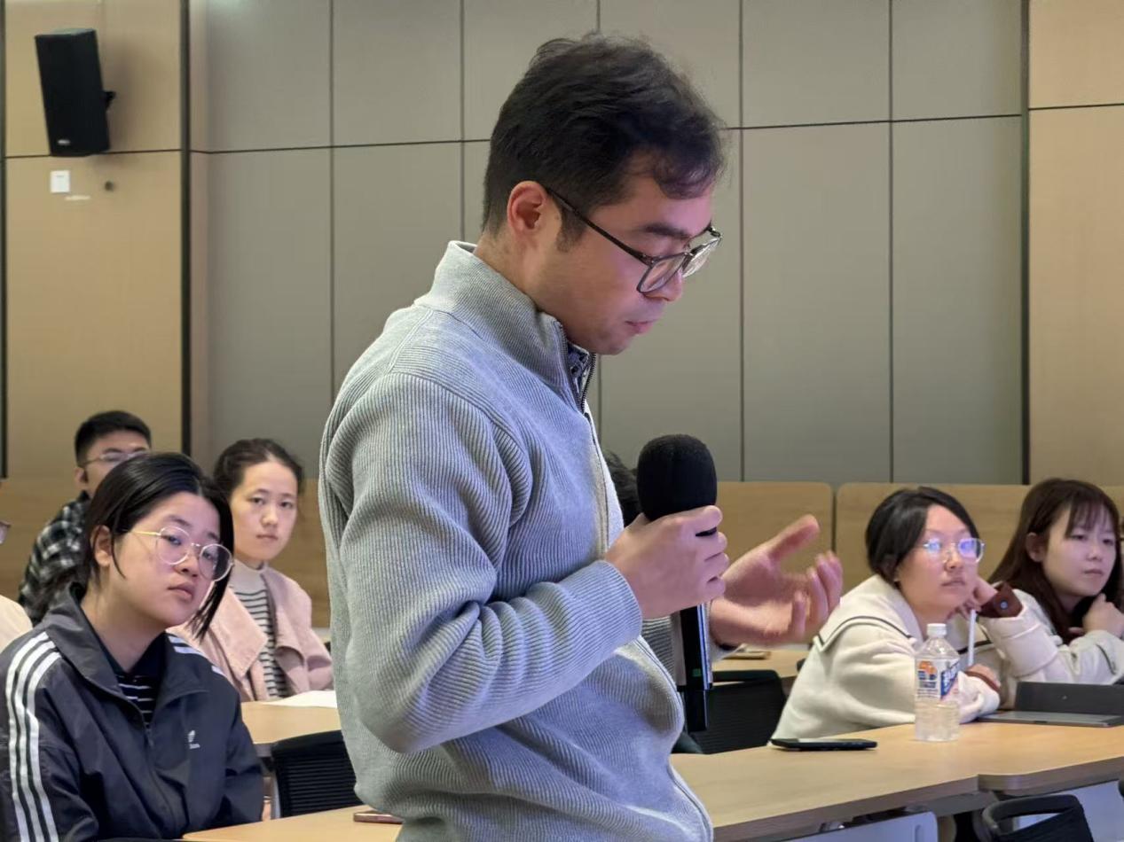 现场学术氛围热烈浓厚,互动交流氛围活跃。与会师生围绕信息收集、数字技术等内容,与 Athanasios Tsanas 教授展开深入研讨与深度互动。Athanasios Tsanas教授对学院师生展现出的浓厚科研热情与扎实学术素养给予高度肯定,针对现场提出的技术难点、研究困惑等问题,逐一进行了专业且通俗易懂的细致解答,并鼓励同学们积极投身科研创新实践,在跨学科交叉领域开拓学术新方向。