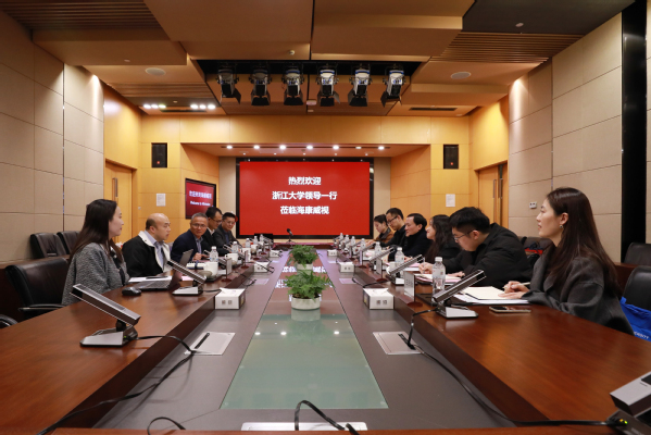周泓书记详细介绍了学院近年来在学科发展、科研创新、人才培养等方面的发展近况。浙大教育基金会副秘书长邵頔与徐总就校企合作模式创新、科研成果转化等议题进行了交流。