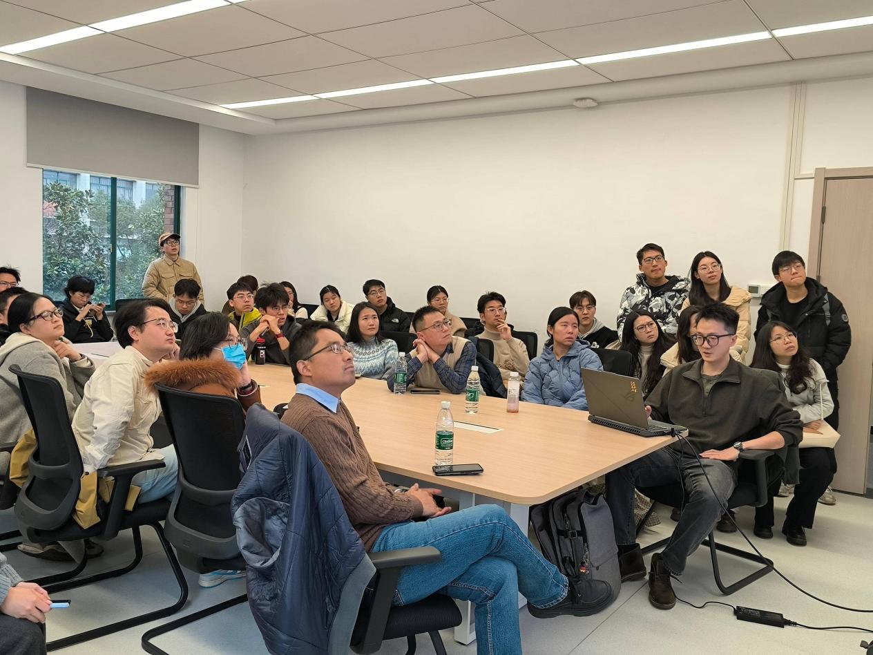与会师生围绕“低场强下MRF的信噪比与精度保障”、“多参数字典构建的优化与验证”以及“该技术在未来临床定量标准化中的角色”等问题,与曹博士展开了热烈而深入的讨论。曹博士结合其从浙大至斯坦福的跨学科研究经历,对问题进行了细致阐述,并分享了关于产学研医协同推动影像技术发展的前瞻思考。