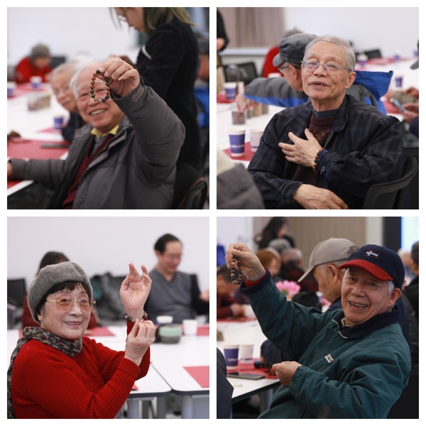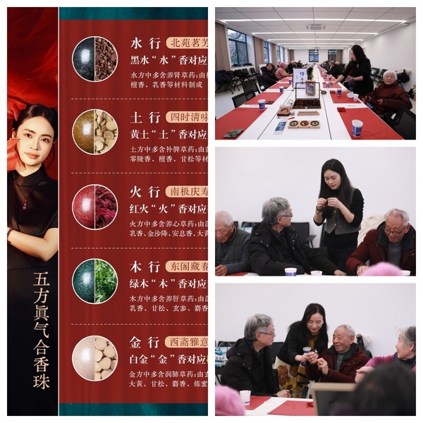 老教师们戴上老花镜,或低头专注挑选香珠,或轻声交流穿串技巧,指尖翻飞间,一颗颗承载着古方韵味的香珠逐渐串成精致手串。大家互相展示着亲手完成的作品,腕间馨香萦绕,脸上满是孩童般的喜悦与满满的成就感。有老教师笑着说:“闻着这香,浑身舒坦,再动动手、动动脑,和老朋友们唠唠嗑,太开心了!”