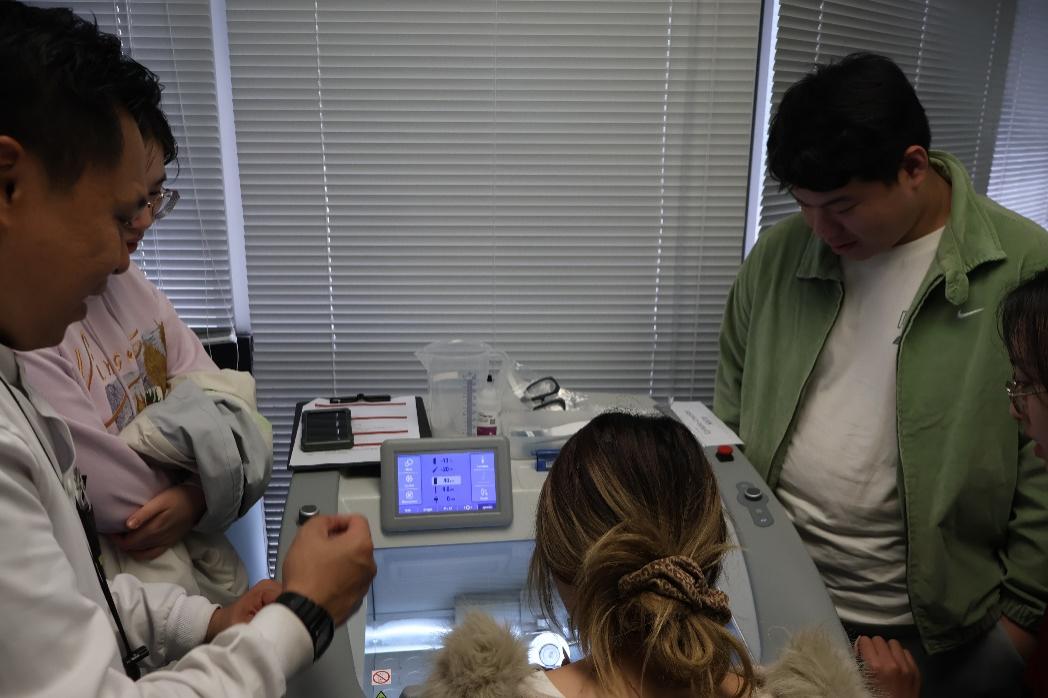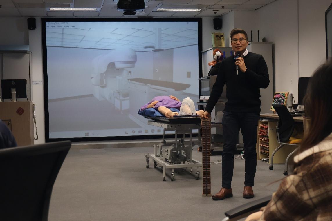 在放射学实验室,梁允信实务副教授向访学团同学介绍了放射疗法及其应用。