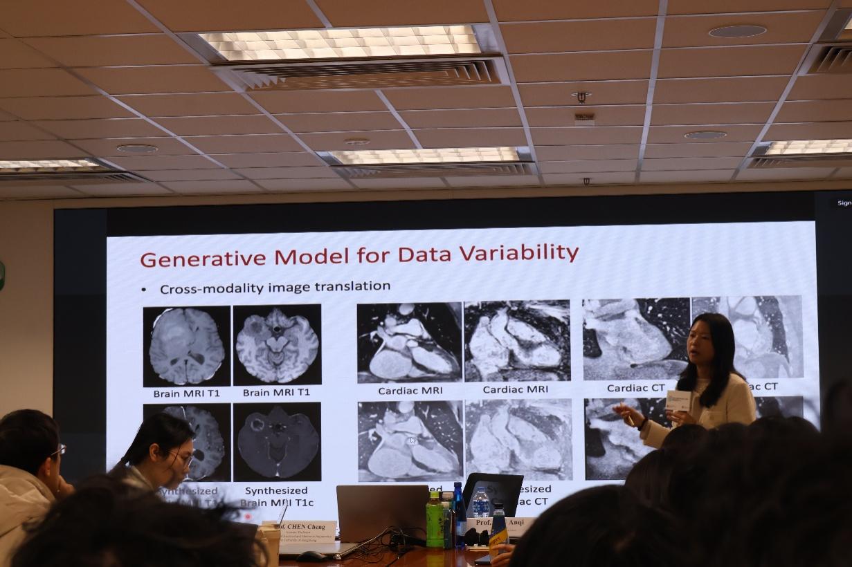 在Journal Club中,访学团同学和课题组的老师和博士生进行领域前沿的文献交流,主要涉及大语言模型,计算机视觉等人工智能和生物医学工程交叉的前沿领域。文献交流后,仇安琪教授就未来深造,方向选择,科研规划等方面与同学们进行交流,并回答了同学们在深造学校和专业方向选择、时间规划和科研进展上的一些疑惑,交流氛围热烈融洽。之后同学们听取了一场关于AI技术与医学研究的学术讲座,涉及生成式人工智能系统,医学影像和病例文本的综合的AI模型,利用生成式人工智能工具预处理数据,或通过傅里叶变换进行谱分离的数据预处理等前沿研究热点。