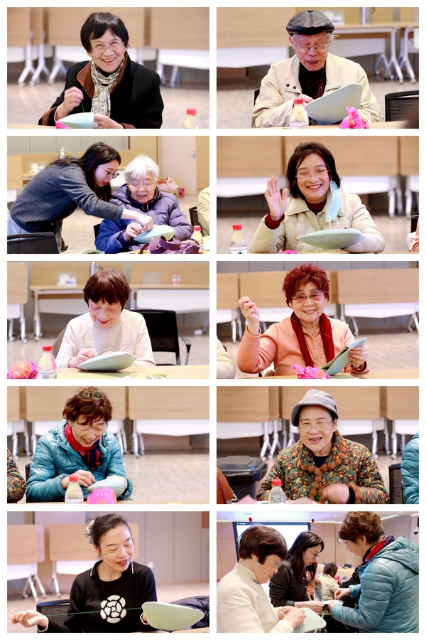 令人惊喜的是,徐教师作为男士,刺绣技艺格外娴熟,引得众人打趣询问是否外科医生出身。他笑称年轻时擅长打毛衣,手艺功底扎实。同样上手极快的还有颇具书画功底的黄老师。老教师们虽佩戴着老花镜,却沉醉于手工带来的温暖与治愈。面对镜头,大家放缓动作,姿态优雅,气质如兰。