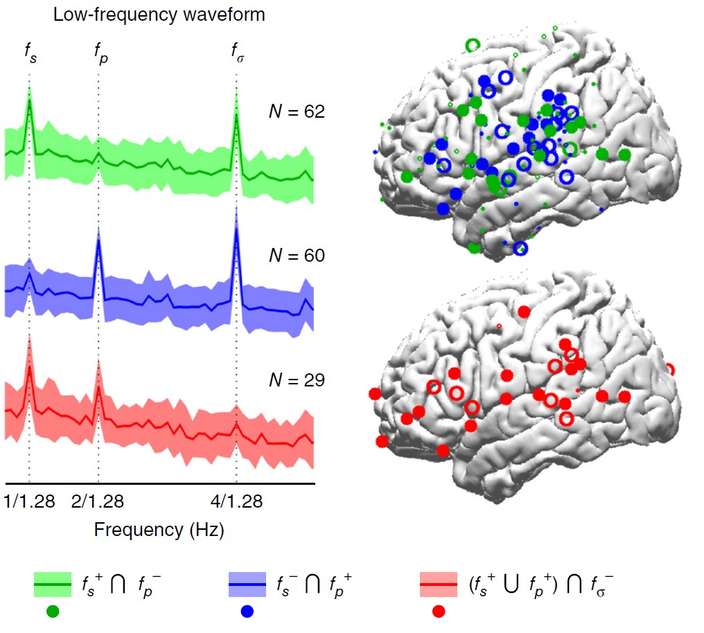 Ding, N., Melloni, L., Zhang, H., Tian, X., & Poeppel, D. (2015). Cortical tracking of hierarchical linguistic structures in connected speech. Nature neuroscience.