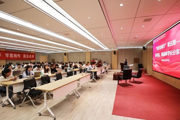 On November 15, 2024, the fifth installment of the CBEIS Roundtable — a sharing session featuring alumni Haolong Dong and Yilin Zhang— was successfully held at the Zhou Yiqing Suite, Yuquan Campus, Zhejiang University. Over a hundred students participated in this event, along with Yang Yang, Deputy Secretary of the Party Committee of the college and Secretary of the Discipline Inspection Committee, and members of the Alumni Office.