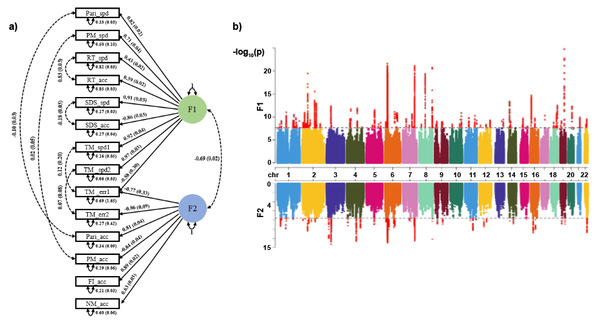 Fig.1 The genomic structural equation model revealed two factors of cognitive processing speed and accuracy.