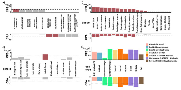 Enrichment analysis revealed that processing speed was notably associated with postsynaptic membranes. At the same time, accuracy was linked to neuron generation and formation (Fig.4a). Gene expression data showed that genes related to both factors had significant expression in brain tissues but not outside the nervous system (Fig.4b). Moreover, genes related to processing speed were significantly expressed during infancy, a period critical for white matter myelination. In contrast, accuracy-related genes did not show significant expression changes over time (Fig.4c). Cell-specific analyses indicated that both factors were significantly associated with GABAergic cells and had specific cell type associations unique to each factor (Fig.4d).